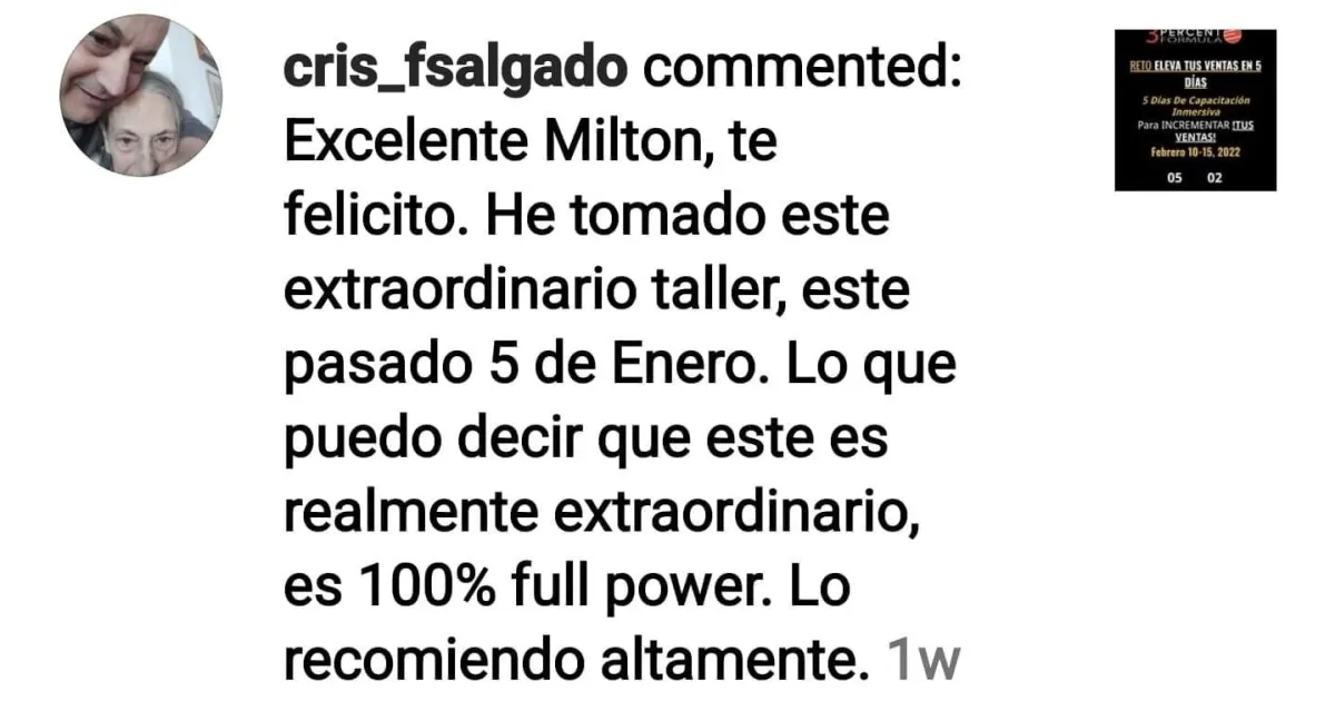"Milton es un experto que te da los Tips específicos para tu emprendimiento. Te invito a que te inscribas"